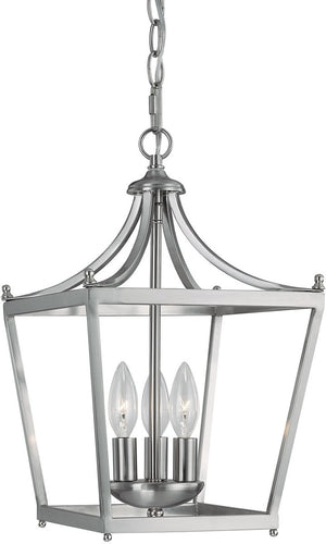 Elevate the look of your home with the 10"W Stanton 3-Light Chandelier in Brushed Nickel. Its elegant design, superior craftsmanship, and versatile usage make it a perfect addition to any room. Don't miss out on the opportunity to enhance your living space with this exquisite lighting fixture. Order now and transform your home into a haven of style and sophistication.