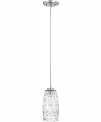 Featuring gorgeous, embossed glass, this sleek and stylish pendant fixture is a refreshing sight to behold, adding beauty and function to any space. Try a row of these light pendants above a bar or a staggered cluster above a dining table for an intimate, elegant aesthetic. The grey cord and Brushed Nickel finish complement its fresh, contemporary and transitional style.