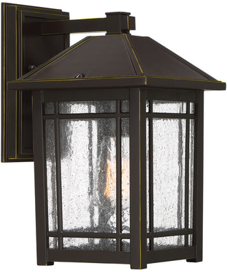 The Cedar Point Medium 1-light Outdoor Wall Light in Palladian Bronze is a perfect blend of rustic charm and timeless elegance. Its design is inspired by the classic craftsman-style architecture, making it an ideal addition to any home that values both tradition and modernity. The lantern features seedy glass panels that subtly obscure the light source, adding a layer of visual interest while ensuring a soft, ambient glow. The frame is adorned with slender trim and lattice detailing, beautifully framing the lantern's light and enhancing its overall aesthetic appeal.