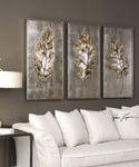 41"H x 21"W Champagne Leaves Modern Art Set of 3