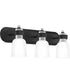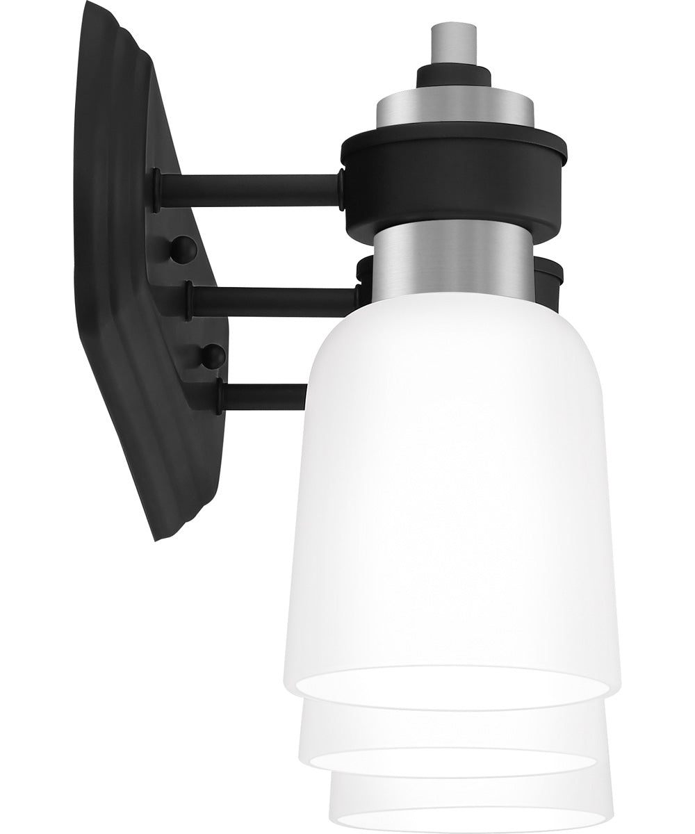 The transitional style of the Conrad collection is both sleek and modern. A stately silhouette finished in matte black and accented with brushed nickel creates the perfect amount of sophistication, and the etched glass shades add a pleasant glow to any room.