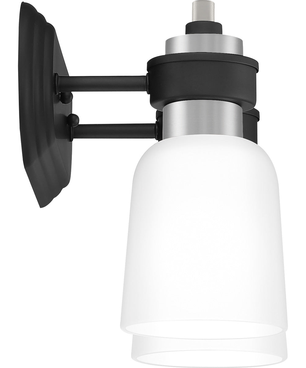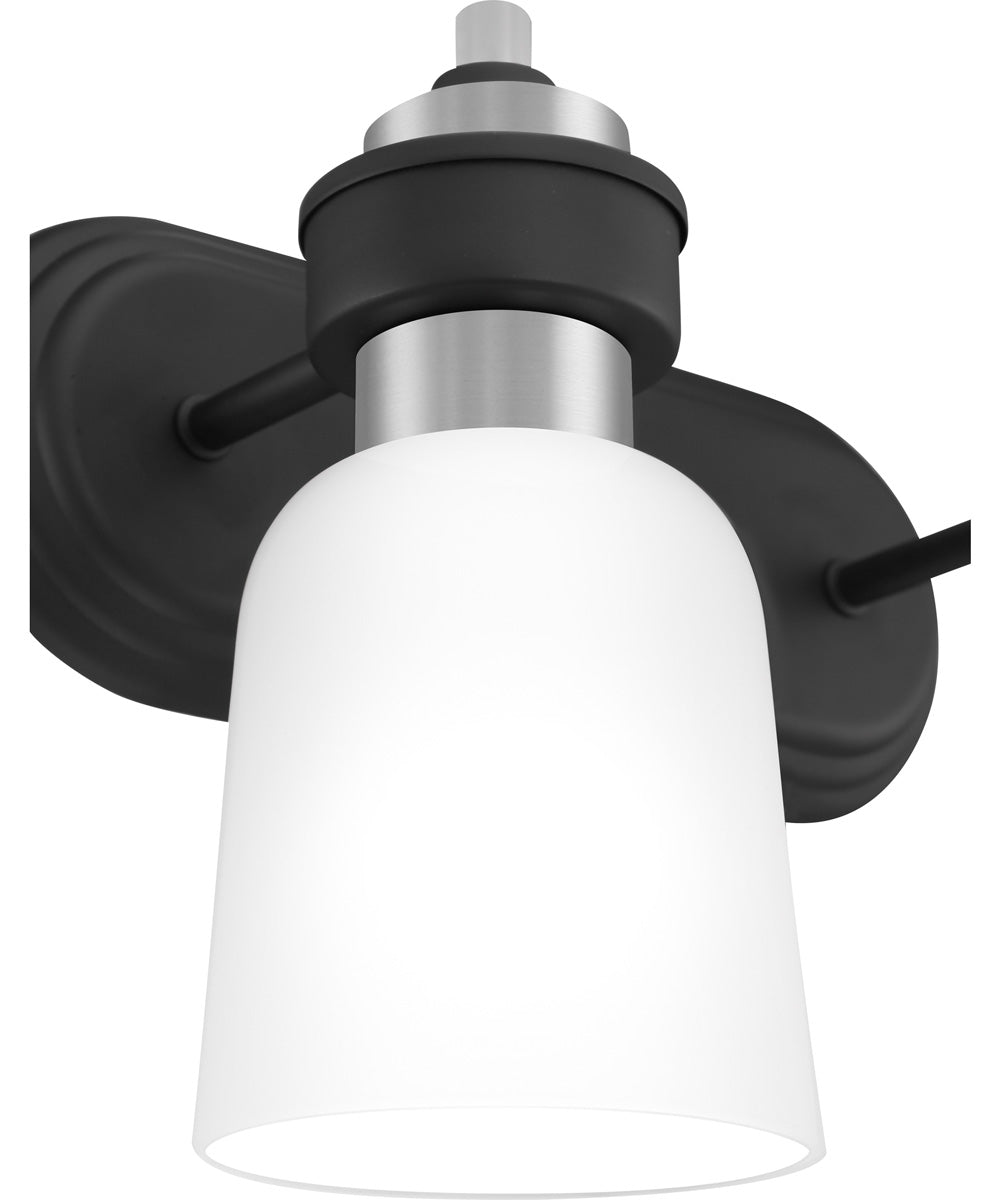 The transitional style of the Conrad collection is both sleek and modern. A stately silhouette finished in matte black and accented with brushed nickel creates the perfect amount of sophistication, and the etched glass shades add a pleasant glow to any room.