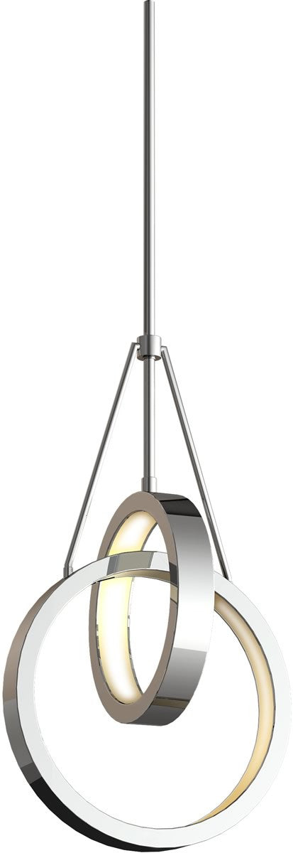 The 12"W Anello 2-Light LED Pendant Light in Chrome is a masterpiece of modern lighting design. This fixture features a striking three-ring configuration that creates a captivating visual effect, tricking the eye with its suspended, minimalist form. The chrome finish adds a touch of sophistication and elegance, making it a perfect addition to any contemporary decor. Made from high-quality steel and acrylic, this pendant light is not only stylish but also durable and long-lasting.