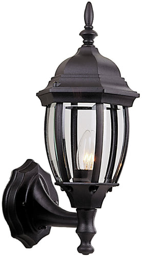 Attaches to a wall, typically the wall of a porch, or to the side of a garage door. The backplate of the fixture covers up the electrical installation area.