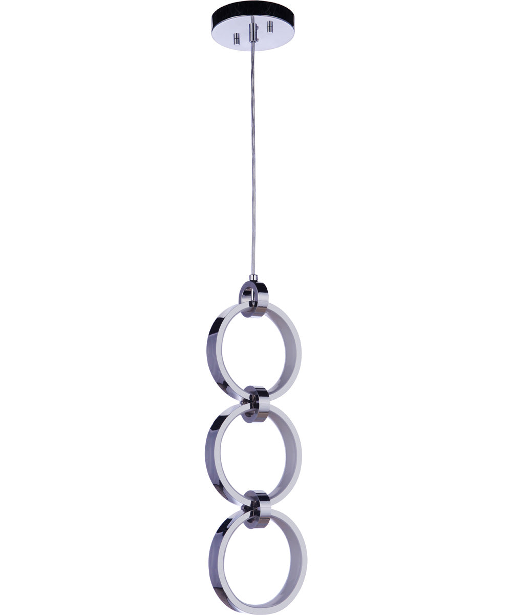 The Context Pendant Chrome is a stunning piece of modern lighting that brings an air of sophistication to any space. This pendant light features a sleek, polished chrome finish that gleams with a mirror-like quality, adding a touch of luxury to your decor. The design comprises three interlinked rings, creating a visually appealing geometric form that is both contemporary and timeless. This unique shape not only makes a bold statement but also ensures the light is evenly distributed, casting a warm and inviting glow.