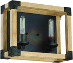 14"W Cubic 2-Light Bath Vanity Light Fired SteelNatural Wood