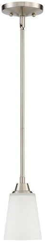 The brushed polished nickel finish and white frosted glass make this pendant light a perfect fit for modern, contemporary, and transitional room themes. It complements neutral color palettes and can seamlessly blend with various decor styles, from minimalist to eclectic.