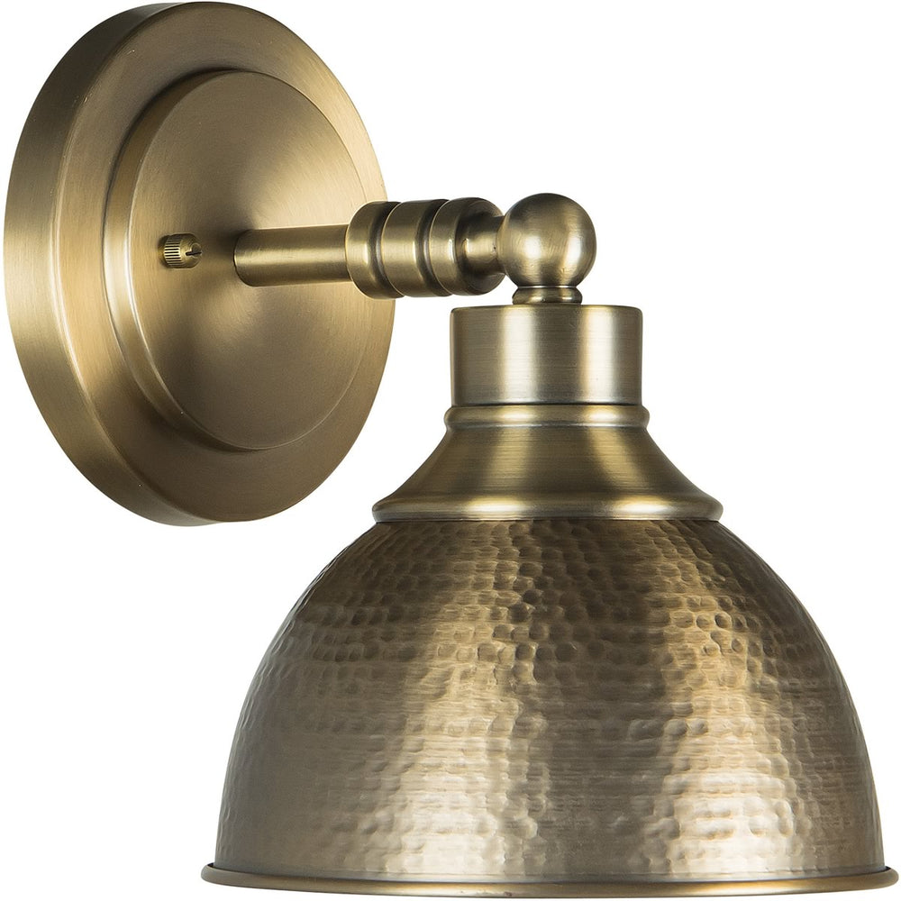 Crafted from high-quality steel, this wall sconce is built to last. The hammered metal shade not only enhances its visual appeal but also diffuses light beautifully, creating a warm and inviting ambiance. With dimensions of 9.63" in height, 7.5" in width, and 9" in depth, it is perfectly sized to make a statement without overwhelming your space. The backplate measures 5.7" x 5.7", providing sturdy support and a balanced look.