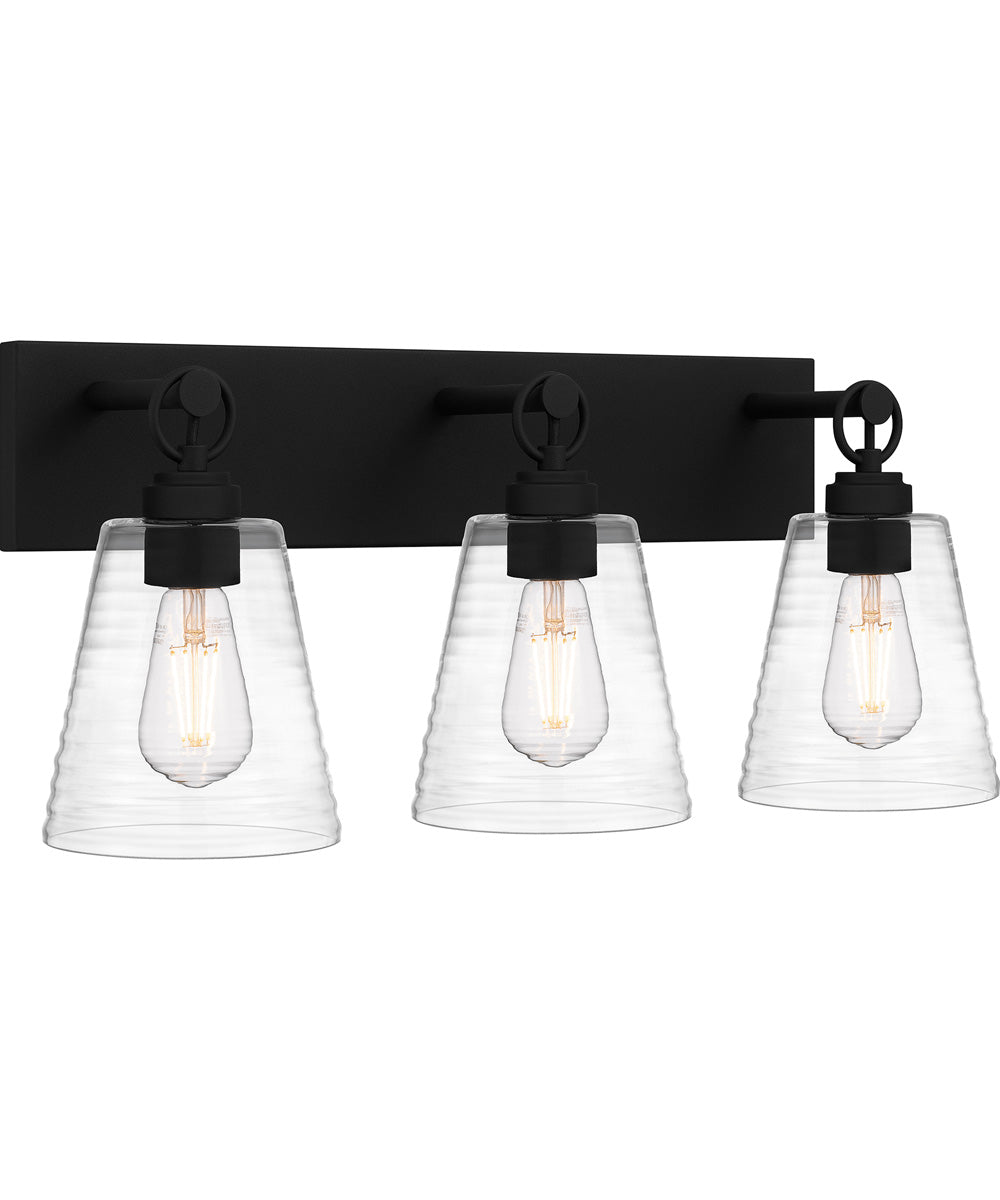 The Dacosta Large 3-light Bath Light in Earth Black is a sophisticated addition to your home decor. Featuring clear swirl glass shades, this wall sconce adds a touch of visual intrigue and elegance to any space. The minimalist backplate, adorned with delicate hook accents, seamlessly blends into various decor styles, from modern farmhouse to contemporary chic. The earth black finish provides a striking contrast that enhances the overall aesthetic appeal.
