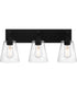 This versatile light fixture can be installed facing up or down, allowing you to customize the lighting direction according to your preference. It accommodates three 100-watt medium base bulbs (not included), providing ample illumination for your bathroom or vanity area. The clear glass shades ensure that the light is bright and evenly distributed, perfect for tasks such as grooming and applying makeup.