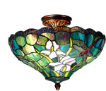 14"W Savannah Tiffany Flush Mount Antique Brass Plating