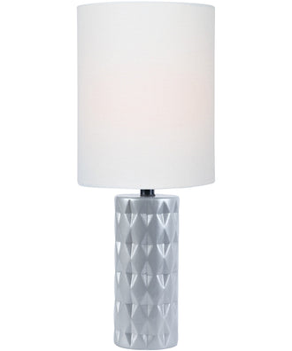 The Delta 1-Light Mini Table Lamp in Silver Ceramichrome with a White Linen Shade is a stunning addition to any space. Its sleek, cylindrical base features a sophisticated silver ceramichrome finish that adds a touch of modern elegance to the room. The base's textured geometric pattern creates visual interest and depth, making it a standout piece. Topped with a pristine white linen shade, this lamp exudes a timeless charm that complements various interior styles.