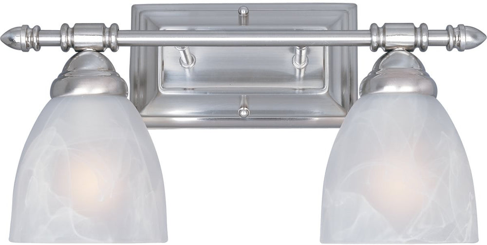 Enhance your bathroom with the 16"W Apollo 2-Light Bath Satin Platinum fixture. Its combination of style, functionality, and quality craftsmanship makes it an excellent investment for any home. Don't miss out on the opportunity to elevate your bathroom decor with this elegant and charming light fixture. Order now and experience the perfect blend of form and function.