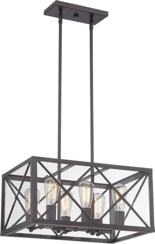 The satin bronze finish and geometric design of this chandelier make it a versatile piece that works well with various décor themes. It pairs beautifully with modern, industrial, and transitional styles. For a cohesive look, consider incorporating other satin bronze fixtures and accessories into your space. This chandelier also complements neutral color palettes, allowing it to stand out as a statement piece without overwhelming the room's design.