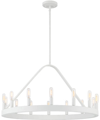 The Carousel 14 Light Chandelier in Matte White is a stunning addition to any home, blending seamlessly with various décor styles. Its minimalist design features clean lines and a sleek matte white finish, making it an ideal centerpiece for modern dining rooms, living areas, or even children's bedrooms. The chandelier's circular frame supports fourteen candelabra-base bulbs, creating a striking visual effect that enhances the ambiance of any space.