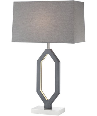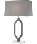 The Desmond Table Lamp stands out with its unique octagonal frame, meticulously crafted in a sophisticated charcoal grey finish. The openwork design creates a visually appealing silhouette that adds an artistic flair to any room. The lamp is topped with a rectangular fabric shade in a matching grey hue, providing a cohesive look and a soft, diffused light that enhances the ambiance of your space.