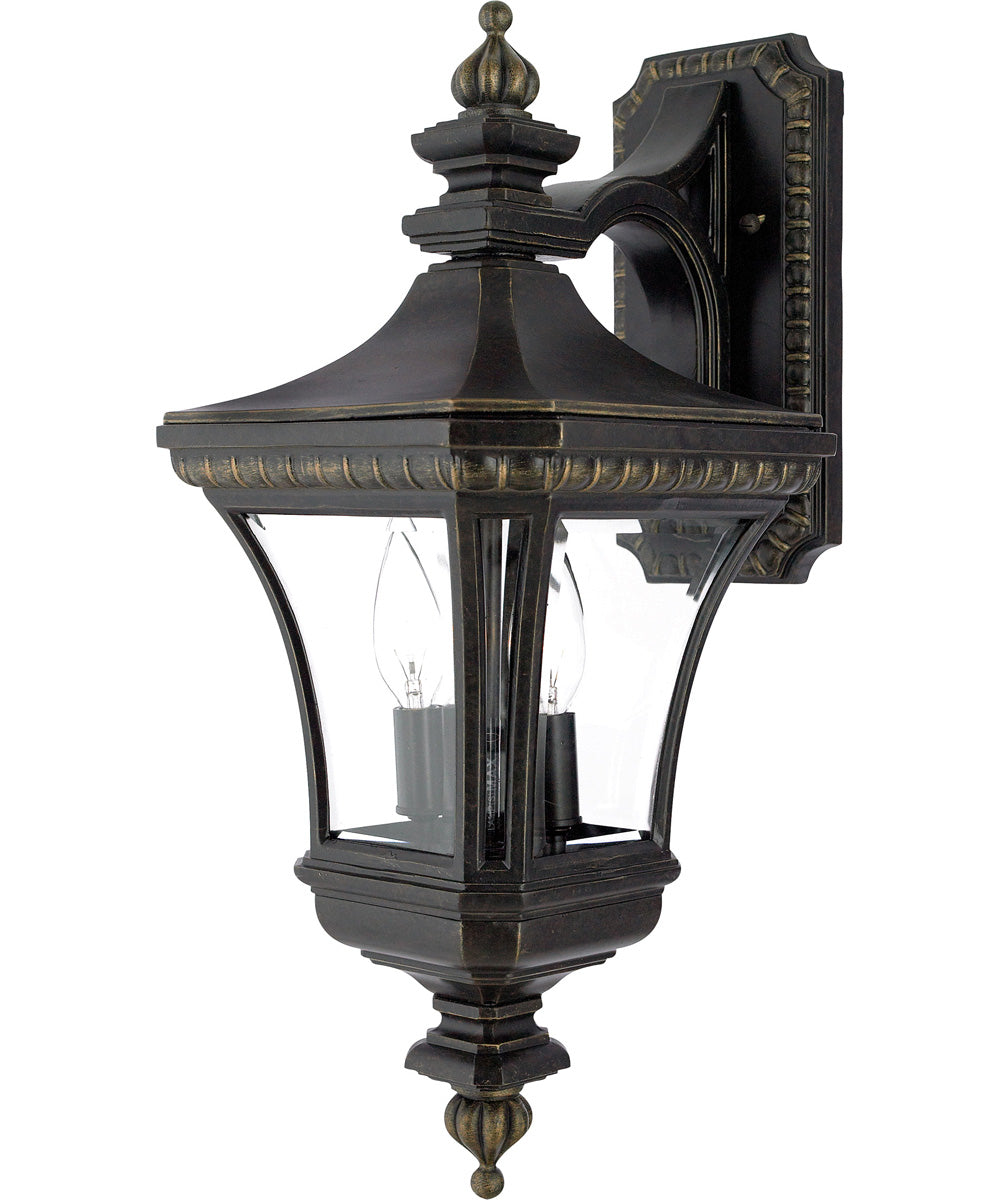 Equipped with two candelabra base bulbs (not included), the Devon Wall Light provides ample lighting to enhance both the safety and ambiance of your outdoor spaces. The clear beveled glass allows for maximum light output, ensuring that pathways, entryways, and patios are well-lit and inviting. With a 120-volt power supply, this fixture delivers reliable performance.