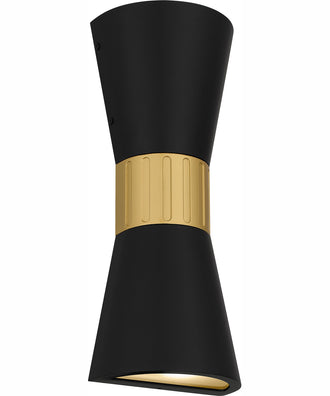 The Dexter Medium Outdoor Wall Light is a perfect blend of modern design and sleek aesthetics. Its bold geometric silhouette, finished in a sophisticated matte black, makes a striking statement on any exterior wall. The design is further enhanced by a gold textured band that adds a touch of luxury and style. This contemporary outdoor sconce is not just about looks; it opens at the top and bottom, allowing for maximum light flow from its integrated LED light source, ensuring your outdoor spaces are well-lit and inviting.