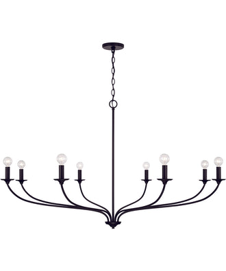 The Dolan 8-Light Chandelier in Matte Black is a stunning piece that brings minimalist elegance to any space. Its sleek silhouette, combined with designer details, creates a striking visual impact without overwhelming the room. The chandelier's matte black finish is powder-coated, giving it a muted, neutral tone that seamlessly blends with various decor styles.