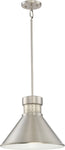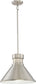 The 14" Doral 1-Light Pendant in Brushed Nickel with White Accents is a striking addition to any home or office space. Its sleek, modern design features a conical shape that exudes sophistication and elegance. The brushed nickel finish provides a contemporary touch, while the white accents add a subtle contrast that enhances its overall appeal. Crafted from high-quality glass and metal materials, this pendant light is not only stylish but also durable and long-lasting.