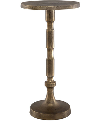 Simple yet creative, this drink table showcases heavily textured cast aluminum and is finished in antique brass. It is perfect for resting your favorite drink or book.