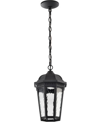 Embrace the charm of traditional design with the East River Outdoor Matte Black hanging lantern. This exquisite fixture showcases a classic lantern shape, featuring clean lines and a robust build. The matte black finish adds a touch of sophistication, making it a versatile addition to any outdoor space. Crafted from die-cast aluminum and adorned with clear water glass panels, this lantern exudes a nostalgic yet timeless appeal. Its design effortlessly blends with various architectural styles, enhancing the aesthetic of your exterior.