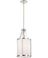 The Easton 1-Light Pendant in Polished Nickel by Nuvo Lighting is a sophisticated addition to any home or office. Its sleek, modern design features a polished nickel finish that exudes a sense of luxury and refinement. The pendant's cylindrical shape is complemented by a white linen shade that diffuses light beautifully, creating a warm and inviting ambiance. The combination of the polished nickel and white linen gives this pendant a timeless appeal that fits seamlessly into various interior styles, from contemporary to transitional.