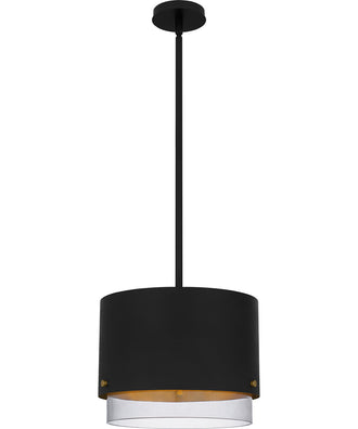 Eilo mini pendants illuminate modern industrial style with a matte black and gold palette. The outer matte black shade features a subtle pattern for added depth and texture, while the inner clear glass shade adds contrast and shine. An integrated LED light source is included for long, lasting and energy-efficient illumination.