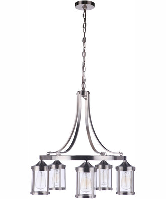 The Elliot 5-Light Chandelier in Brushed Polished Nickel is a stunning centerpiece that adds a touch of sophistication to any room. Its handsome arched bands, coupled with an unexpected decorative link detail, create a visually captivating design. The chandelier's sleek brushed polished nickel finish exudes modern elegance, while the clear glass shades allow for brilliant illumination, making it a versatile addition to both contemporary and transitional spaces.