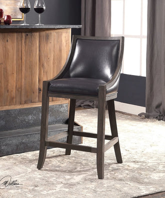Versatile Transitional Styling, Covered In A Steel Gray Welt Trimmed Faux Leather On A Solid Birch Wood Frame, Hand Finished In A Weathered Charcoal Brown Wash. Antique Bronze Metal Kick Plate. Seat Height Is 26".Uttermost's Stools Combine Premium Quality Materials With Unique High-style Design.With The Advanced Product Engineering And Packaging Reinforcement, Uttermost Maintains Some Of The Lowest Damage Rates In The Industry. Each Product Is Designed, Manufactured And Packaged With Shipping In Mind.