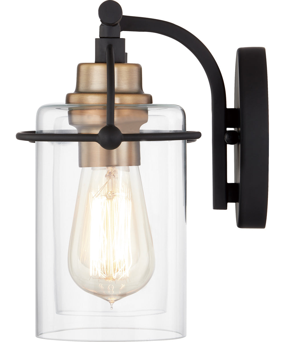 Emerson's transitional silhouette charms with unique harness-style brackets and simple clear glass shades. These bath vanity lights are available in multiple sizes and either a Brushed Nickel or a Matte Black finish. The Brushed Nickel finish boasts a classic simplicity while the Matte Black finish gives way for a more industrial feel with its use of mixed metals. Whichever option you choose, you can't go wrong with Emerson.