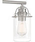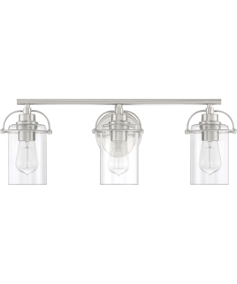 The Emerson's transitional silhouette charms with unique harness-style brackets and simple clear glass shades. Finished in a classic brushed nickel, this collection is sure to complement any décor.