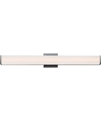 The Baritone 36 inch LED Bath Vanity in Satin Nickel is a sophisticated blend of modern design and functional lighting. The fixture features sleek squares of Satin White glass, elegantly supported by flat Polished Chrome end caps, which are seamlessly integrated into an extruded aluminum frame. This combination of materials not only ensures durability but also adds a touch of contemporary elegance to any bathroom setting.