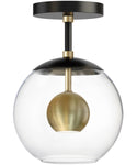 This flush mount light works well with a variety of room themes and decor styles. Its sleek black and brass finish complements modern and minimalist interiors, while its elegant design adds a touch of sophistication to traditional and classic spaces. The clear glass orbs and aluminum spheres create a visually appealing focal point, enhancing the overall aesthetic of your room.