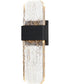 The sconce showcases a sleek, black die-cast aluminum bracket that securely holds a clear cast glass shade. The artisanal cast glass slabs are meticulously crafted to highlight their imperfect contours, creating a captivating visual effect when illuminated. The medium-sized fixture measures 15.5 inches in height and 5.25 inches in width, making it a versatile choice for various outdoor settings.