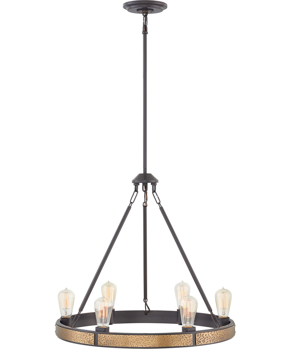 The Everett 6-Light Medium Single Tier in Bronze by Hinkley is a stunning centerpiece that combines elegance with timeless style. This chandelier features a beautifully crafted circular frame made of high-quality steel, finished in a rich bronze hue. The bronze finish not only adds a touch of sophistication but also ensures durability and longevity. The intricate detailing on the frame adds a subtle yet striking visual appeal, making it a perfect addition to any room.