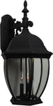 This 3-Light Outdoor Wall has a Matte Black Finish and is part of the Bent Glass Collection. It is Outdoor Capable, and Damp Rated.