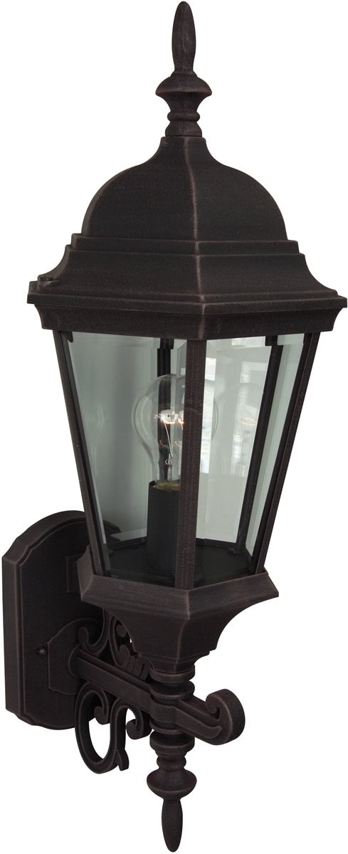 This 1-Light Outdoor Wall has a Rust Finish and is part of the Straight Glass Collection. It is Outdoor Capable, and Damp Rated.