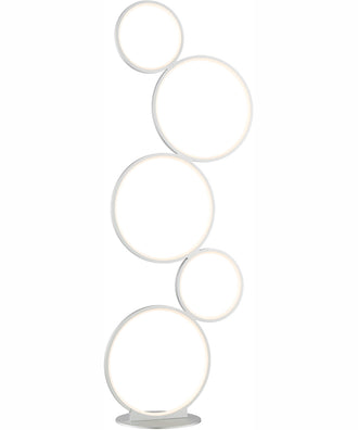 The Fedora LED Floor Lamp is a striking addition to any contemporary space. Featuring a unique design of five interlocking rings, this floor lamp exudes modern elegance. The rings are arranged in a cascading fashion, creating a visually appealing silhouette that stands out as a piece of art. Finished in a sleek silver hue, the Fedora Floor Lamp adds a touch of sophistication to your décor.