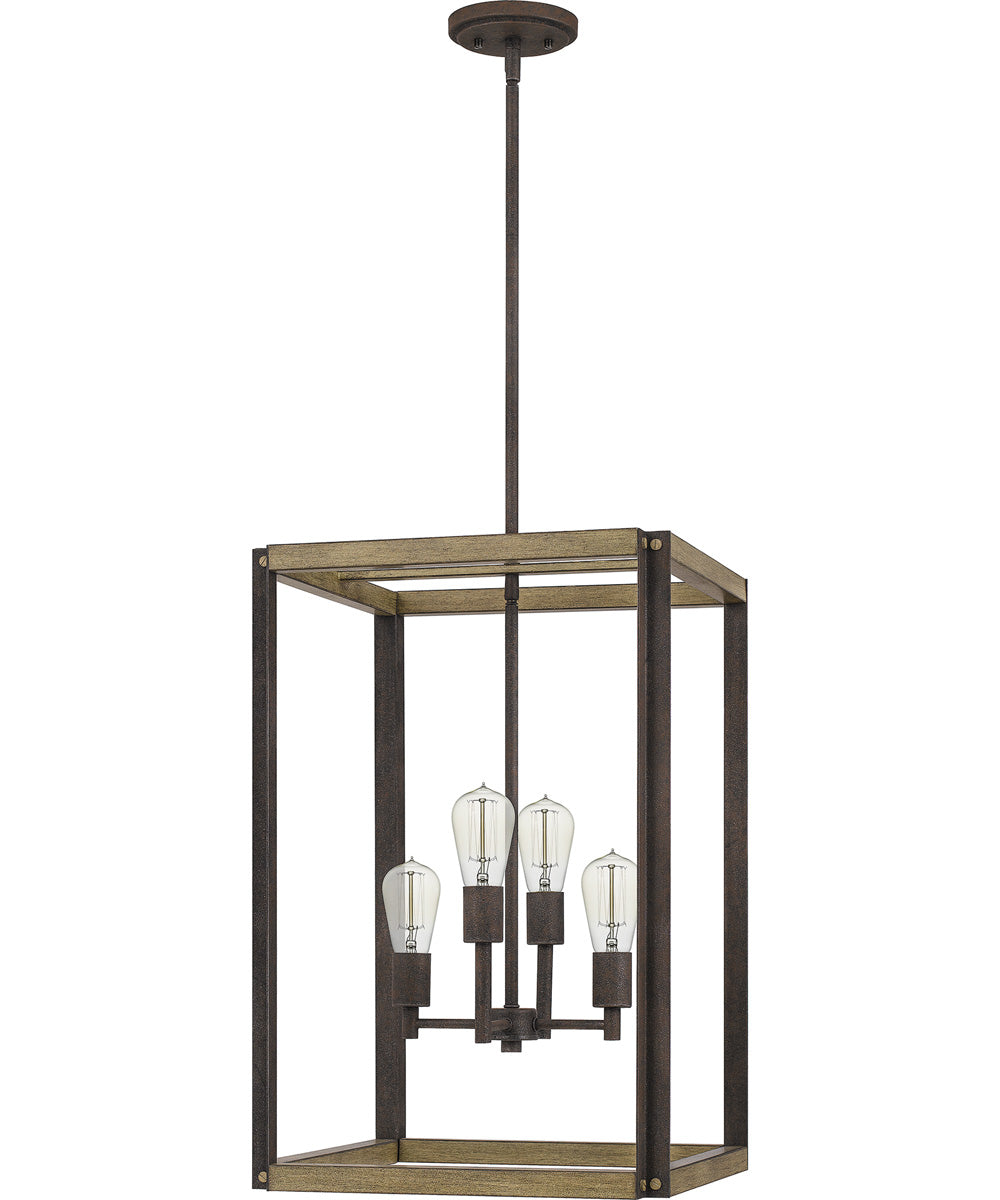 The open, airy design of the Finn collection easily complements many home décor styles. The rectangular silhouette is finished in Rustic Black and paired with a painted Natural Walnut finish to create a handsome farmhouse style fixture. The exposed bulbs allow for maximum light flow to illuminate any room.