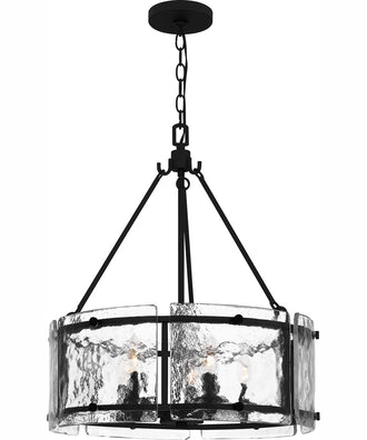 Panels of textured glass pair with an earth black finish to create the Fortress series. Offering simple yet striking design, Fortress is available as a mini pendant, semi-flush mount, pendant, or island light. As a fan light, this design comes in both earth black and mottled silver finishes.