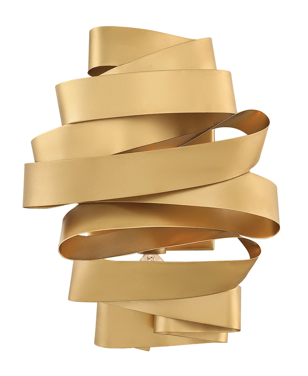 Delfina features a boldly elegant steel ribbon available in Deluxe Gold or Metallic Matte Bronze. This organic shape is both visually intriguing and pleasing as the light flows gently across the overlapping bands.
