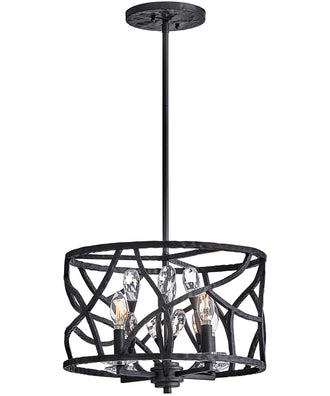 The Eve 4-Light Medium Convertible Flush Mount in Brushed Graphite is a stunning piece that brings an air of sophistication to any room. Its glamorous, organically inspired silhouette features ornate, craftsman-forged stems, embellished with whimsical faceted clear crystal buds on luxuriously finished vines. The intricate design captures the eye and adds a touch of elegance to your home decor.