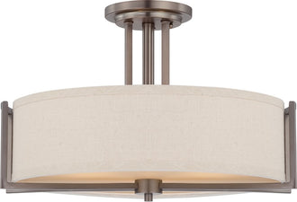 Nuvo Lighting presents the Gemini - 3 Light - Semi-Flush Fixture with Khaki Fabric Shade , to breathe new life into your home or office.