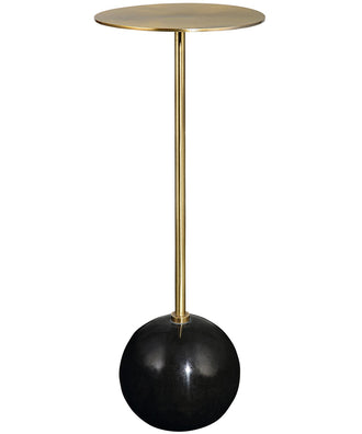 This sophisticated drink table goes wherever the party goes. an elegant honed black marble foot with natural white veining supports the solid brass top perfect for holding a book or drink. because of the natural characteristics of marble, each piece will have unique veining patterns.
