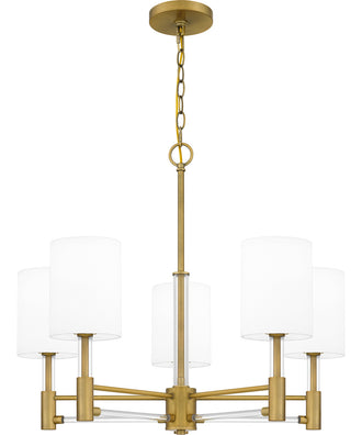 Recap: The Gretchen 5-light Chandelier in Aged Brass features off-white fabric shades, a classic silhouette, and clear linear accents. Made from durable steel, it measures 21.75 inches in height and 26 inches in width and depth. Ideal for dining rooms, living rooms, and entryways, this chandelier accommodates five 60-watt candelabra base bulbs and is part of the Gretchen Collection by Quoizel. With its versatile style and elegant design, the Gretchen chandelier is a perfect addition to any home. Order now to transform your space!