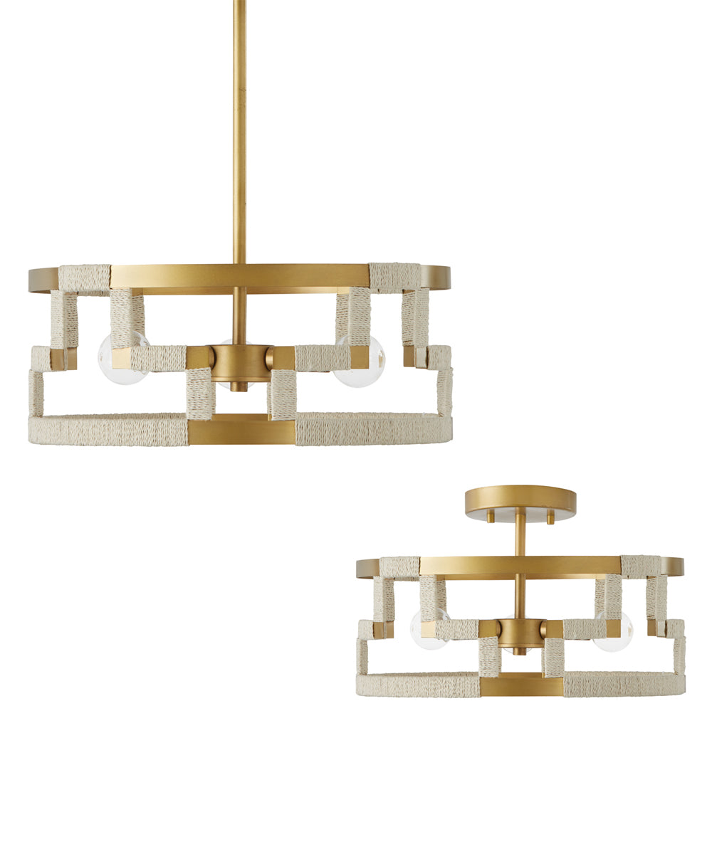 The Hala 3-Light Dual-Mount Semi-Flush/Pendant Mount is a striking addition to any home, boasting a bold and graphic pattern that commands attention. This fixture features a unique blend of organic luxe and modern sophistication, making it a versatile piece for various interior styles. The geometric design is inspired by the Greek key motif, creating a visually captivating structure that adds a touch of elegance and artistry to your space.