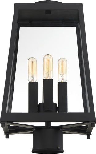 The 16"H Halifax 4-Light Outdoor Matte Black / Glass lantern by Nuvo Lighting is a striking addition to any exterior space. Its sleek, modern design features a matte black finish that exudes sophistication and timeless elegance. The clear glass panels allow the light to shine brilliantly, creating a welcoming ambiance. This post lantern's geometric shape and clean lines make it a perfect fit for contemporary and traditional settings alike.
