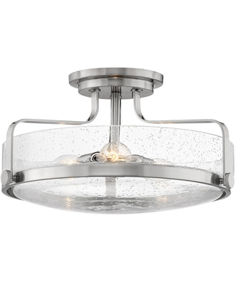 Hinkley Harper 3-Light Large Semi-Flush Mount in Brushed Nickel with Clear Seedy glass