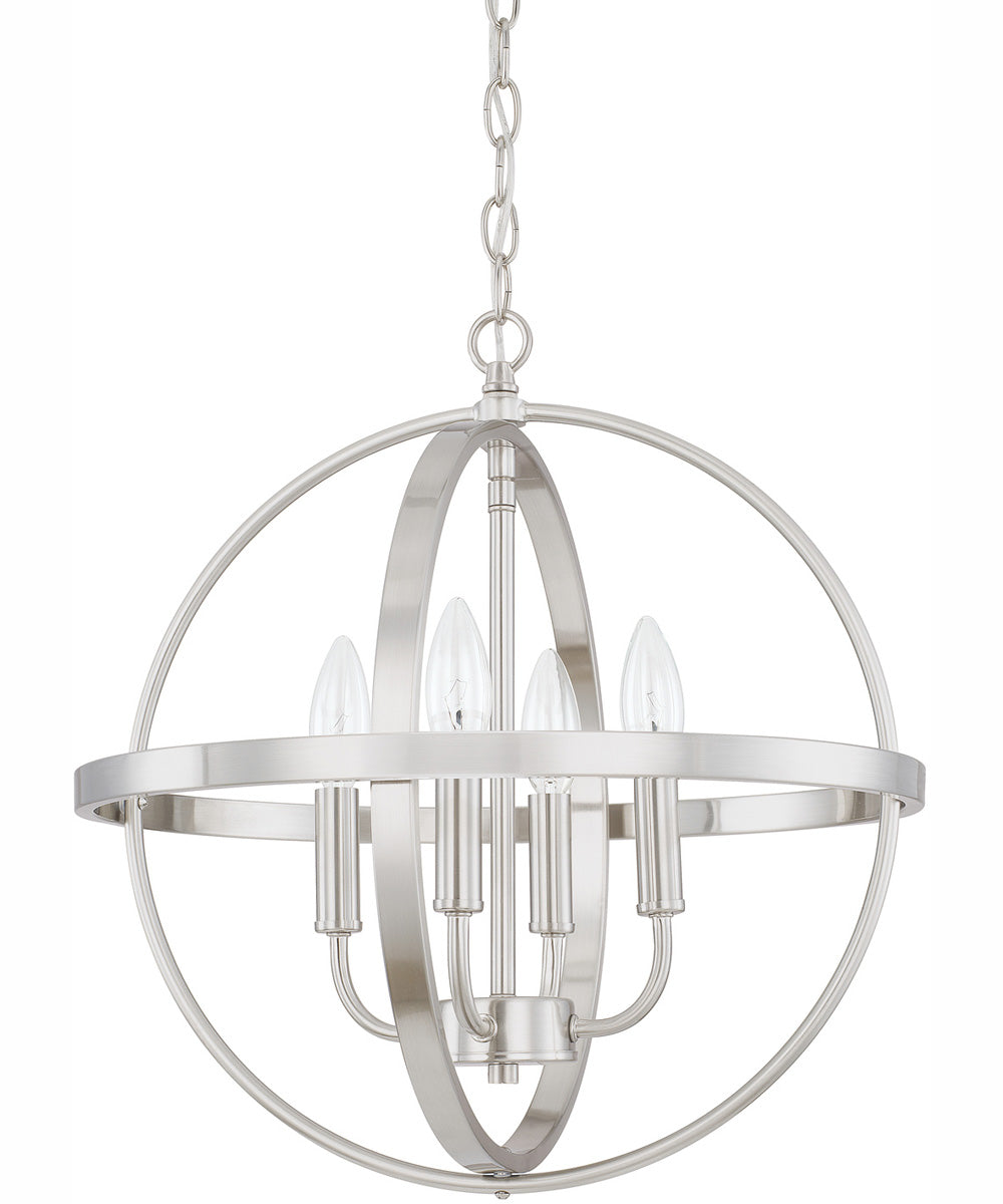 The Hartwell 4-Light Pendant in Brushed Nickel by Capital Lighting is a stunning addition to any home or office space. This pendant light features a sleek, modern design with a brushed nickel finish that adds a touch of sophistication and elegance. The fixture's spherical shape, crafted from durable metal, creates a striking visual impact that complements various interior styles, from contemporary to transitional.